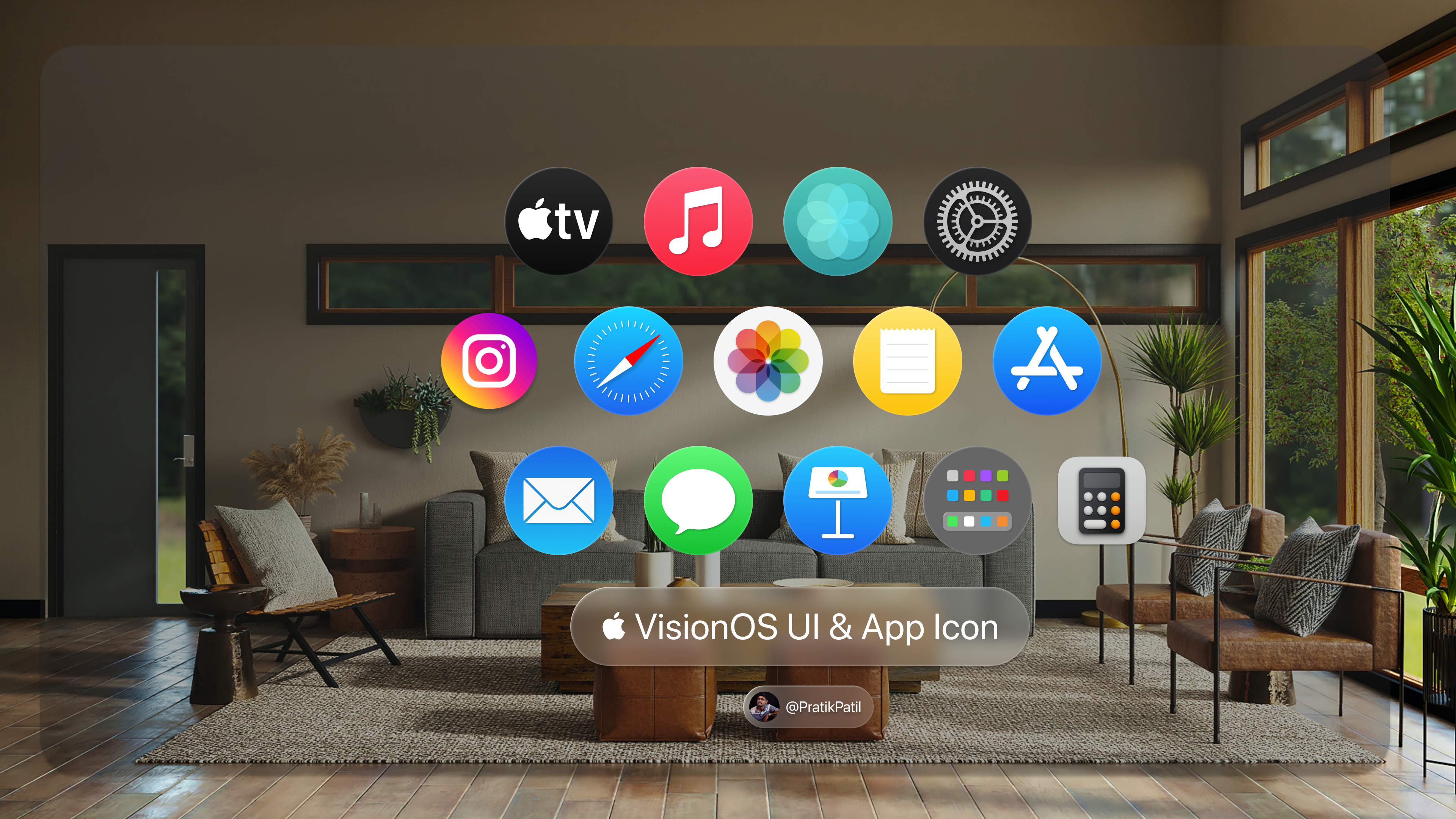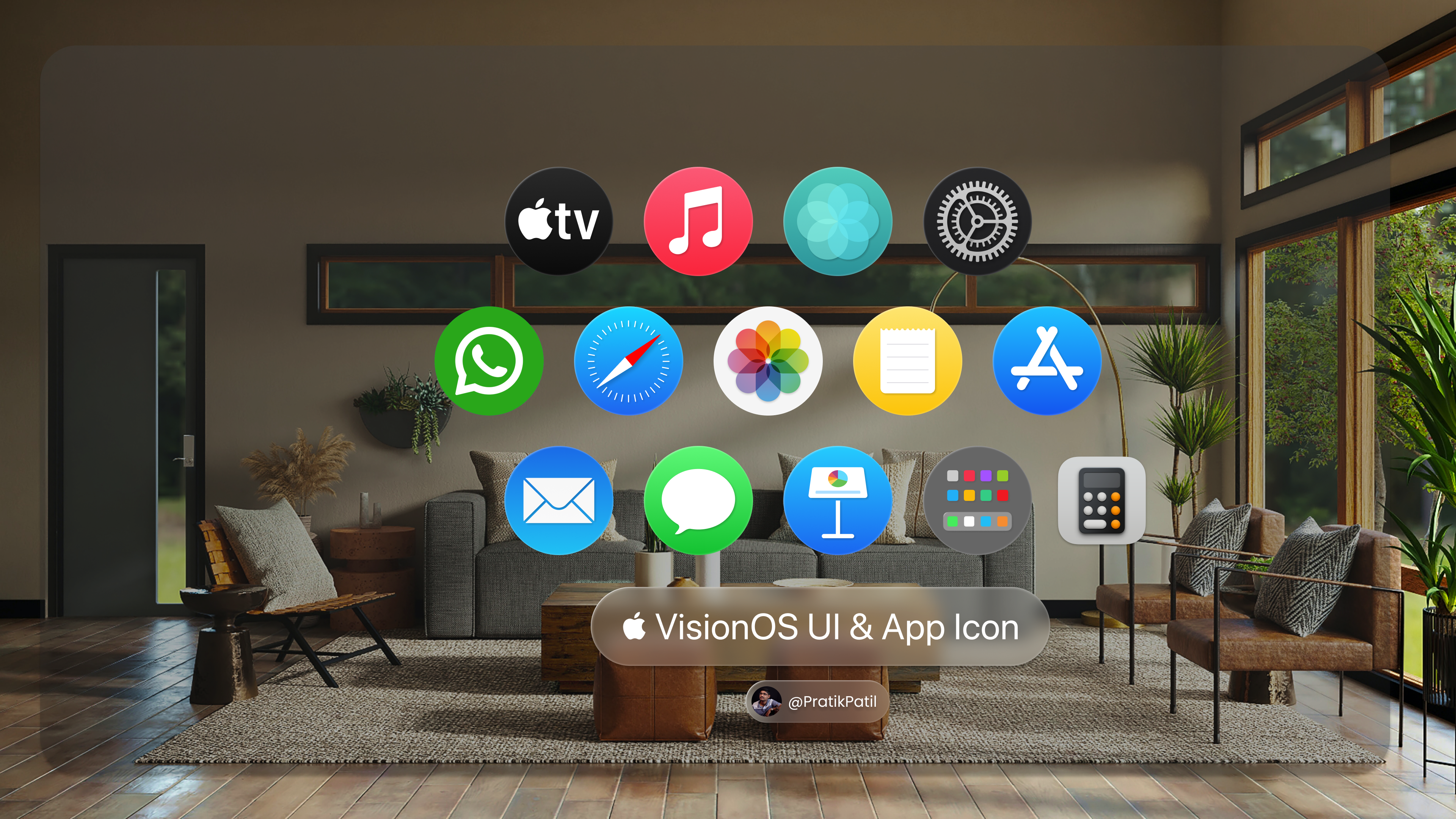 I can't wait to show you my brand-new Figma set of VisionOS components that I just finished making. Take a look at the VisionOS APP Icon Pack & Icon Template. A look of the Apple VisionOS Instagram and Whatsapp Pages.
