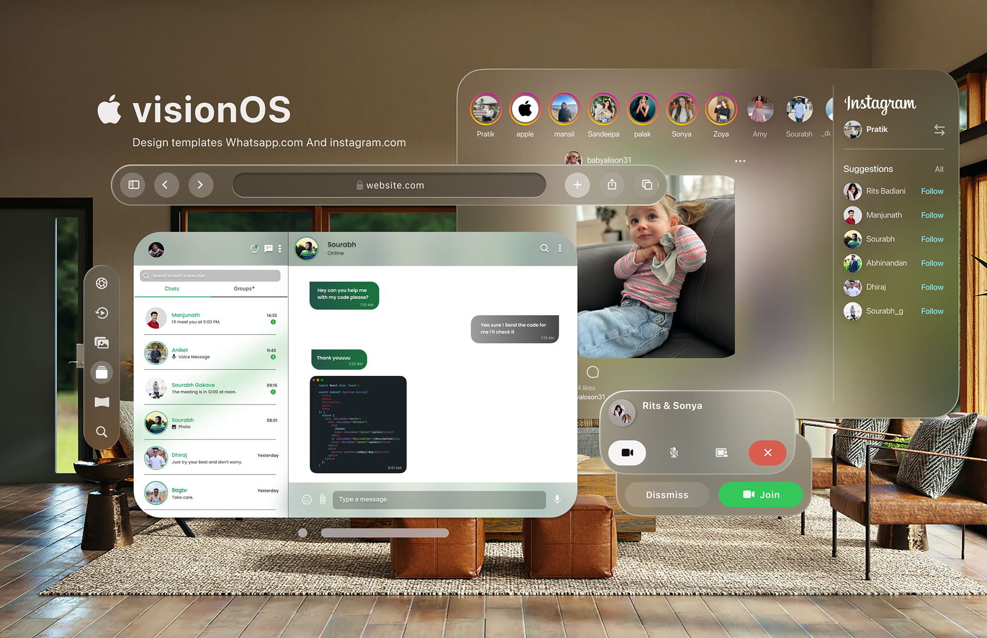🥽Apple Vision Pro: Whatsapp and instagram Page